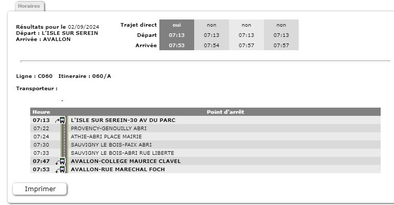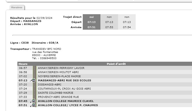 – Collèges et Lycées d’Avallon au départ de Massangis et l’Isle sur Serein (Civry)